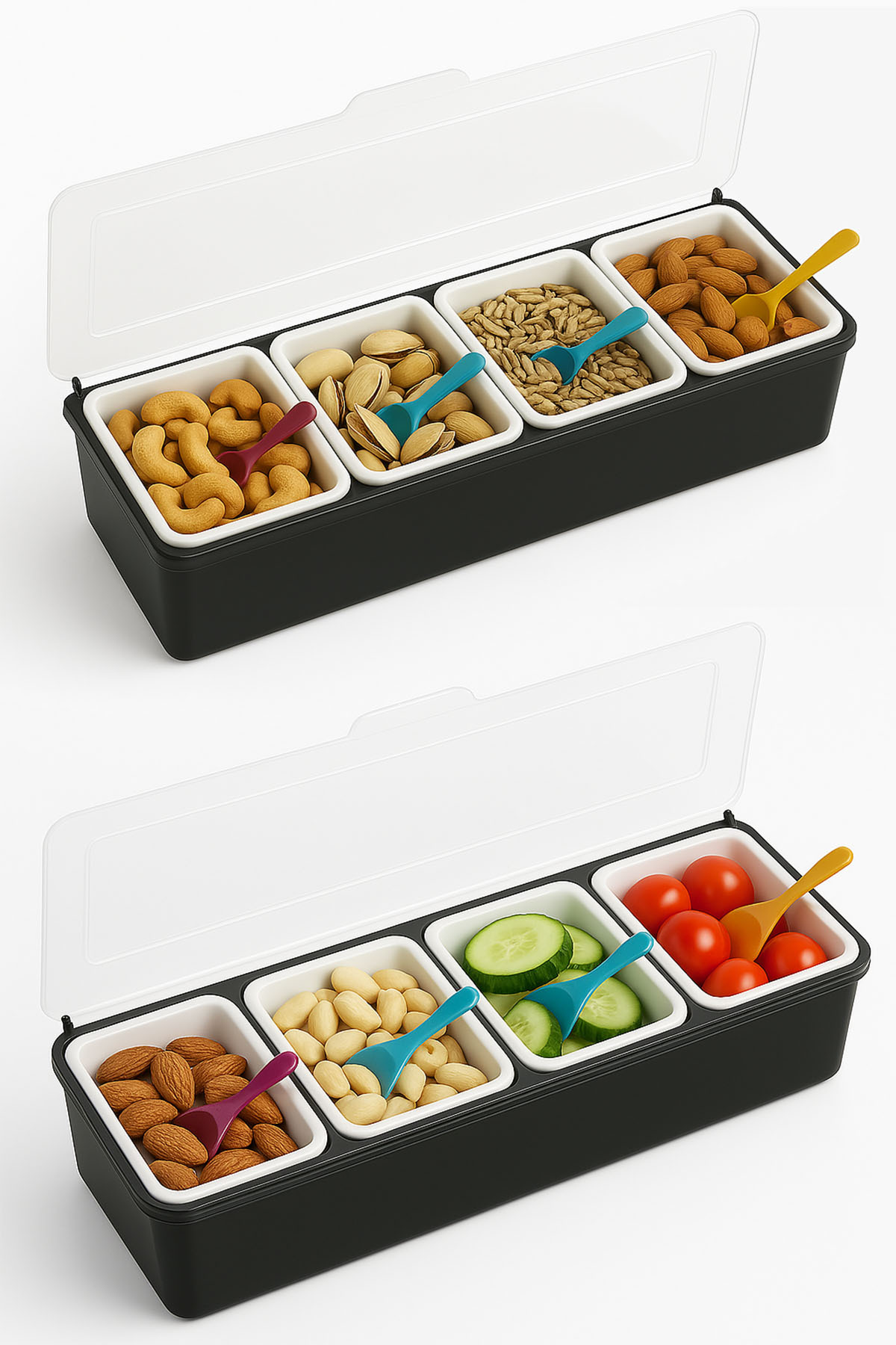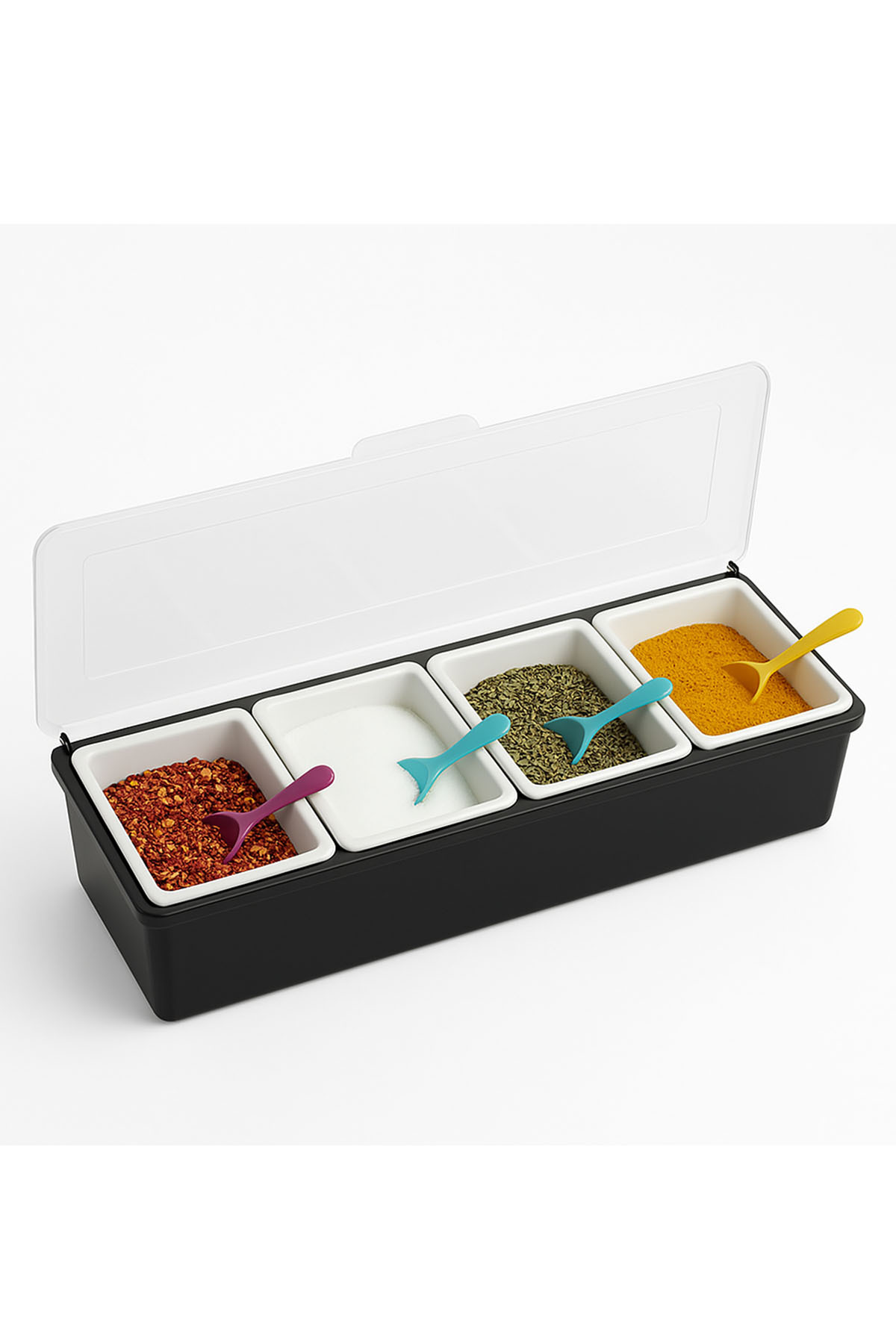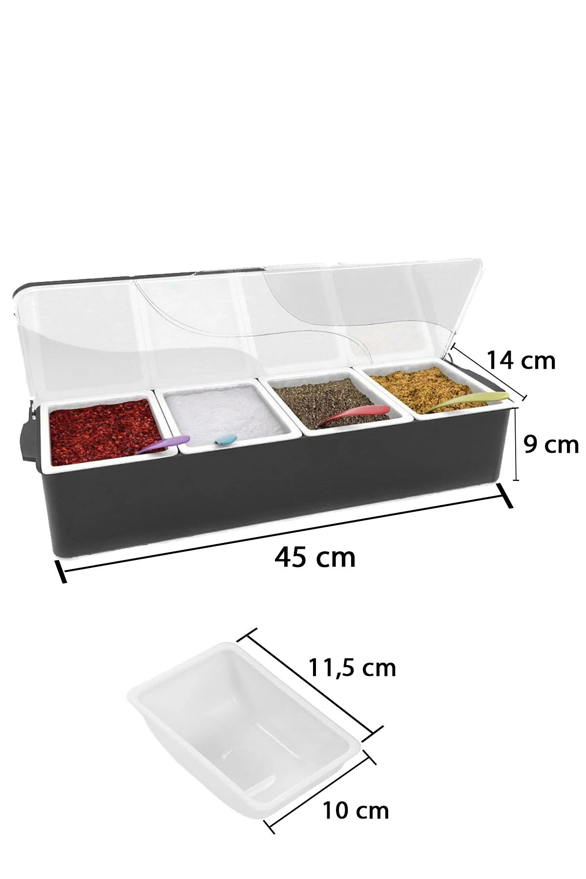 Vodinox Bar Konteyner 4 Bölmeli Kapaklı Hazırlık Kabı Baharatlık ve Kapaklı Çerezlik Profesyonel