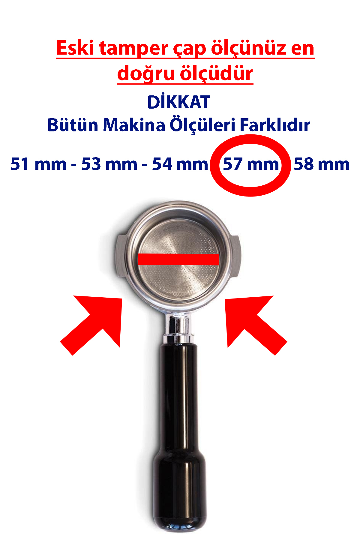 Vodinox Cafe Barista Ekipmanları Kahve Espresso Tamper Temper İnox Paslanmaz Saplı Click Klikli 57mm
