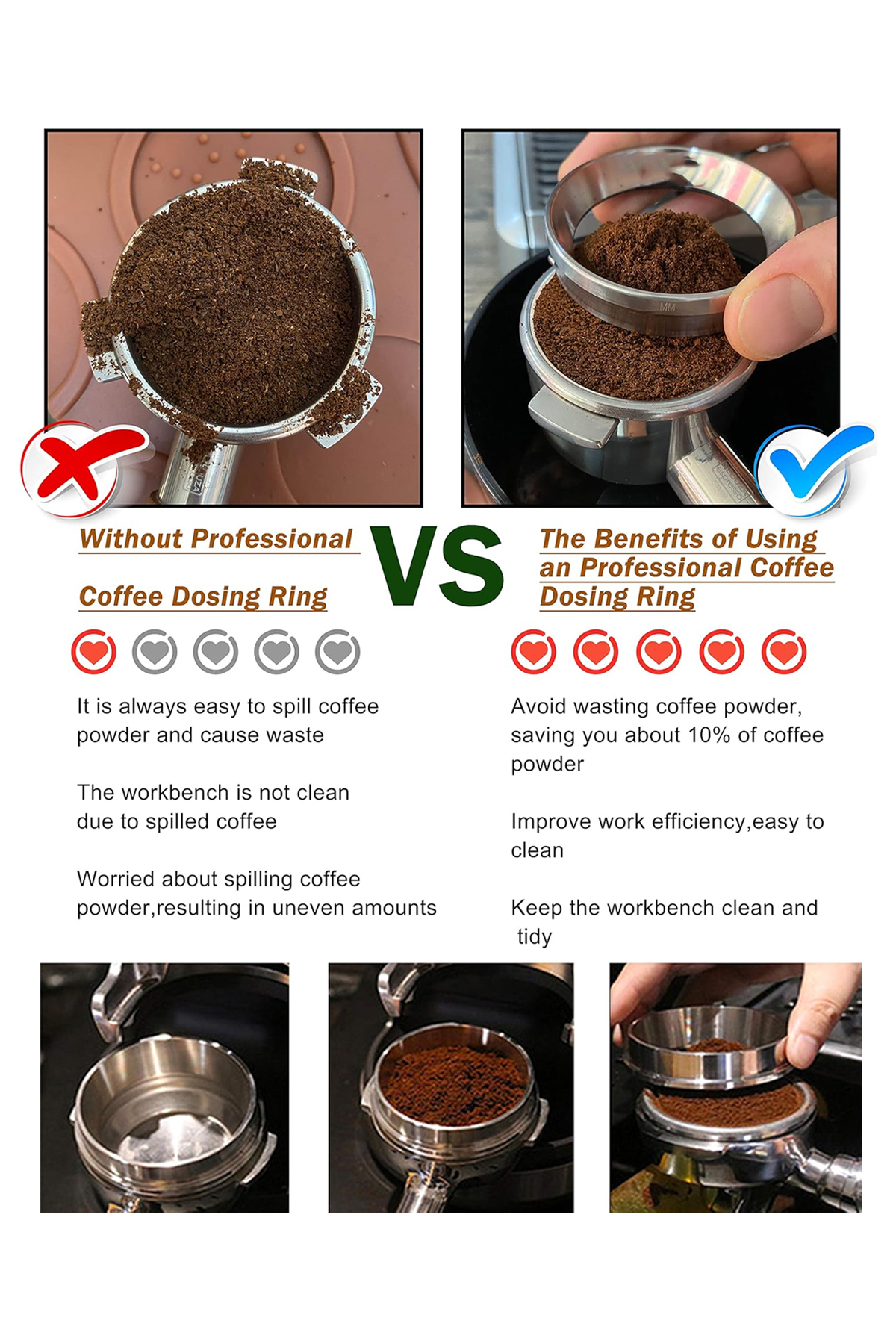 Vodinox Dozajlama Çemberi 58 mm Portafiltre Dozaj Hunisi Barista Ekipmanı Kahve Espresso İnox