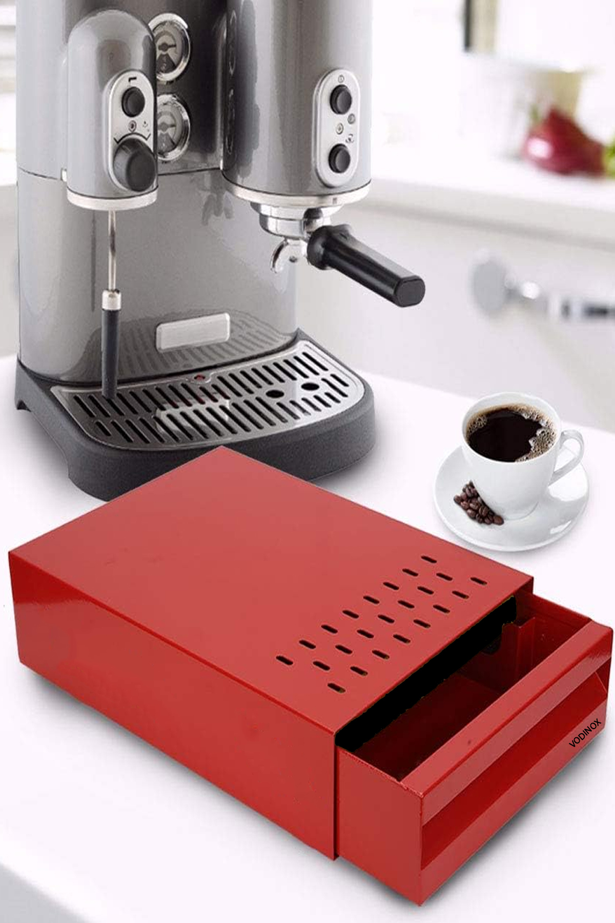 Vodinox Posa Çekmecesi Kahve Atık Tablası Knock Box ( 25 X 35 X 7 CM) LARGE KIRMIZI